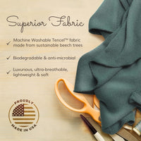 Introducing this multi purpose wrap from Happy Luxe, made with Tencel fabric for easy washing. Use it as a poncho, blanket, or wrap for ultimate versatility. Its soothing and soft texture offers comfort in any situation. Ideal for nursing new mothers, those recovering from surgery or receiving chemotherapy. Made from 95% Tencel and 5% Spandex with a brushed, soft finish for ultimate coziness. Available in Black or Sage.