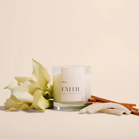 From Havyn Studios. This gorgeous candle strengthens the spirit with a deeply rooted sense of peace and confidence. Grounded base notes of Sandalwood and Musk steady the heart with a quiet confidence. Sweet Coconut fosters a sense of peace, while the delicate notes from bright petals of Honeysuckle and Magnolia serve as a refreshing reminder to look forward to the best that has yet to come. 2oz.
