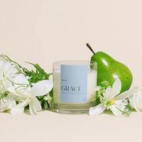 By Havyn Studio. This petite 2 oz. candle floods the spirit with a deep sense of refreshment that rebalances and renews. Watery notes of Fresh Rain cleanse the soul, as delicate droplets of Morning Dew awaken the heart to the present moment. Soft notes of Luscious Pear blended with the purity of White Lily opens up the spirit and senses to expectantly receive a new day. A great gift when you are hoping to soothe and comfort.